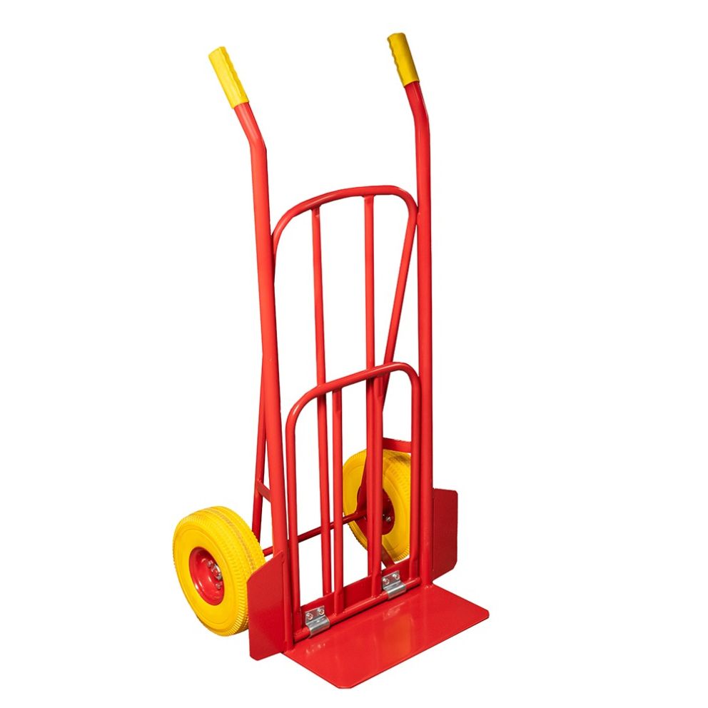 Carucior pentru transport material proiectat pentru utilizarea zilnica in depozite, spatii comerciale sau santiere de lucru. Echipamentul este prevazut cu o platforma fixa ( 415 x 190 mm ) si o platforma rabatabila ( 510 x 345 mm ) pentru adaptarea la volumul de incarcare. Capacitatea maxima admisa este de 180 kg iar rotile pline din poliuretan permit un contact ferm cu suprafata de rulare, fara a mai fi necesar controlul periodic al presiunii. Manerele acoperite ofera un plus de confort pe durata exploatarii.