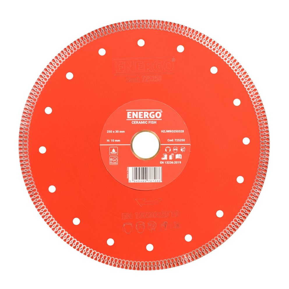 Disc diamantat taiere CERAMIC FISH 5S 250X30.0mm (25,4 mm) PT sector continuu - amprentat gresie/faianta-portelan ceramica-dura ENERGO