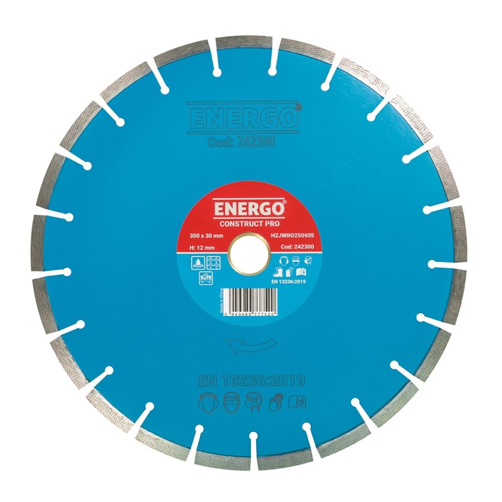 Disc diamantat taiere CONSTRUCT PRO 5S 300x30mm (25.4mm) sector cu pastile diam-3D beton-armat pavele boltari caramida mozaic marmura granit ENERGO