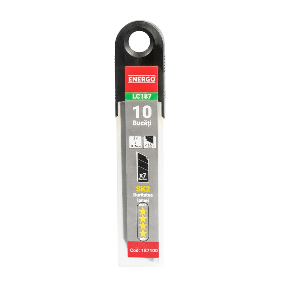 Lama cutter dreptunghiulara LC187 latime 18mm L-100mm material otel SK2 negru cu 7 segmente 10 bucati ENERGO