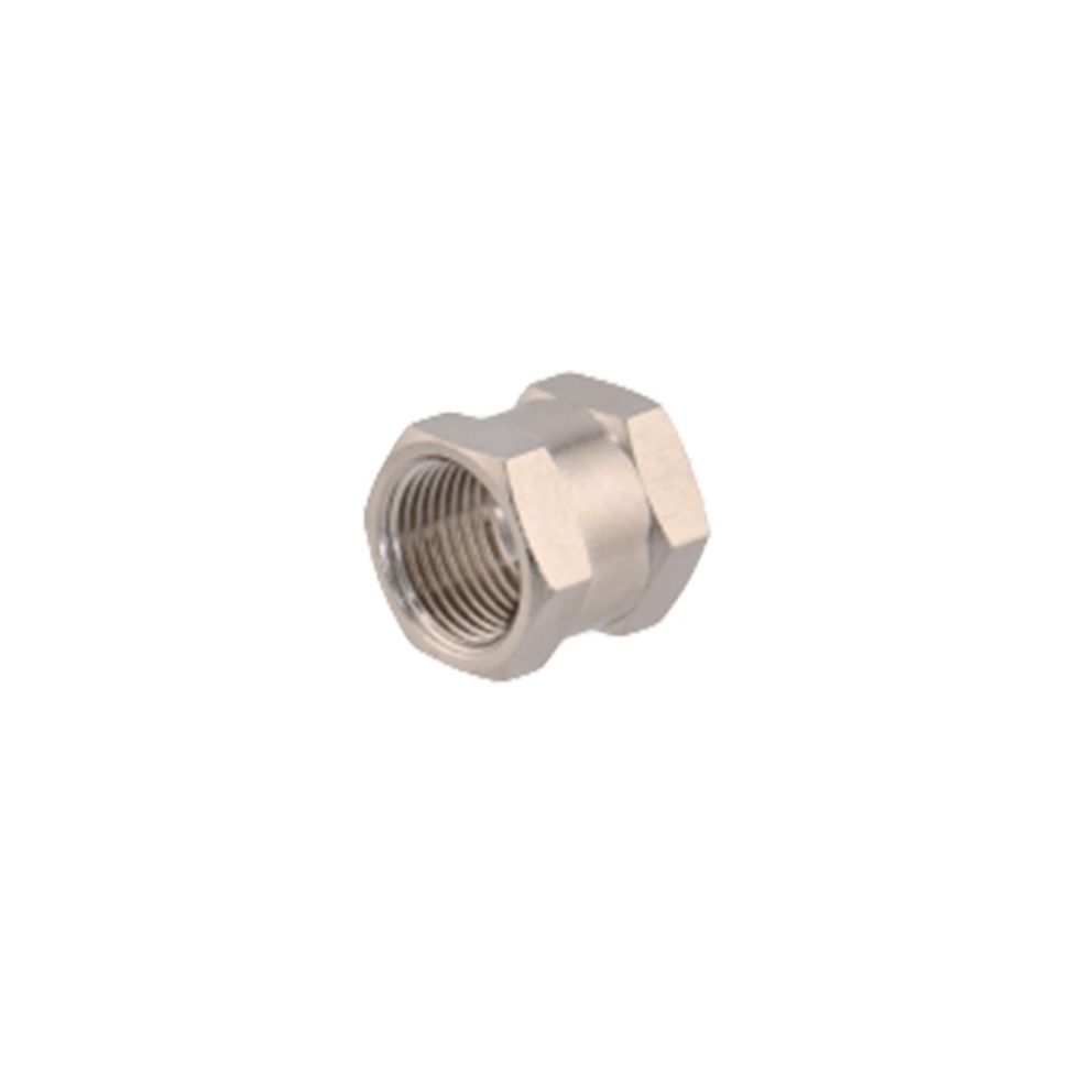 Mufa cilindrica realizata din alama, prevazuta cu filet interior pentru realizarea conexiunilor de marimi diferite. Utilizata pentru imbinarea liniara a componentelor in instalatii de aer comprimat cu filete de 1/8" si 3/8".