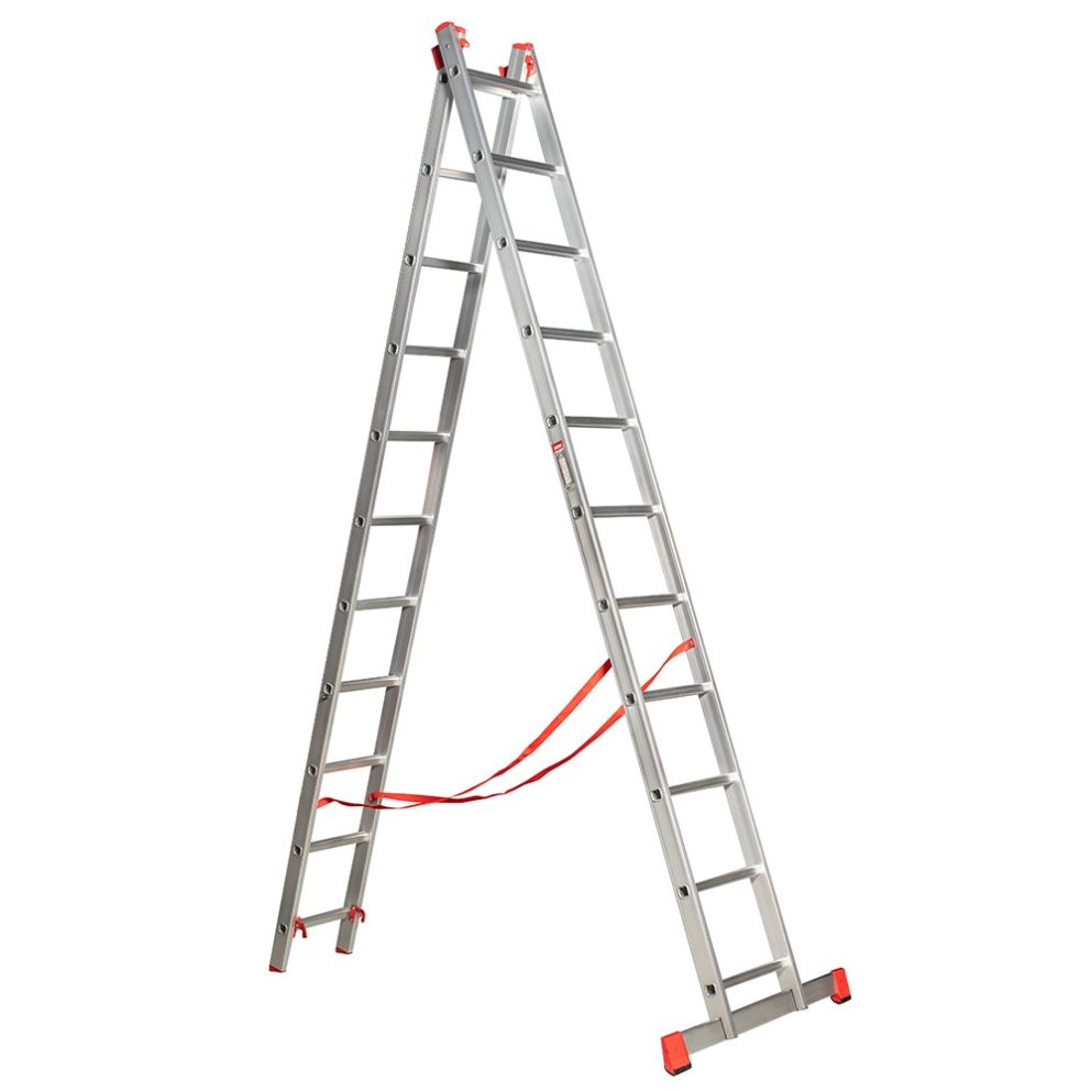 Scara 2 tronsoane culisante universala ST 2x11 trepte Lmax-5.10m Lmin-3.12m H forma A-2.99m din aluminiu ENERGO