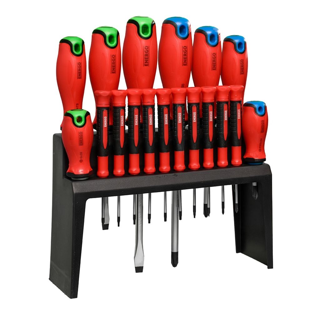 Set surubelnite EASY DRIVE profil PH SL/dreapta TX precizie tija CrV cu maner bimaterial in suport 18 piese ENERGO